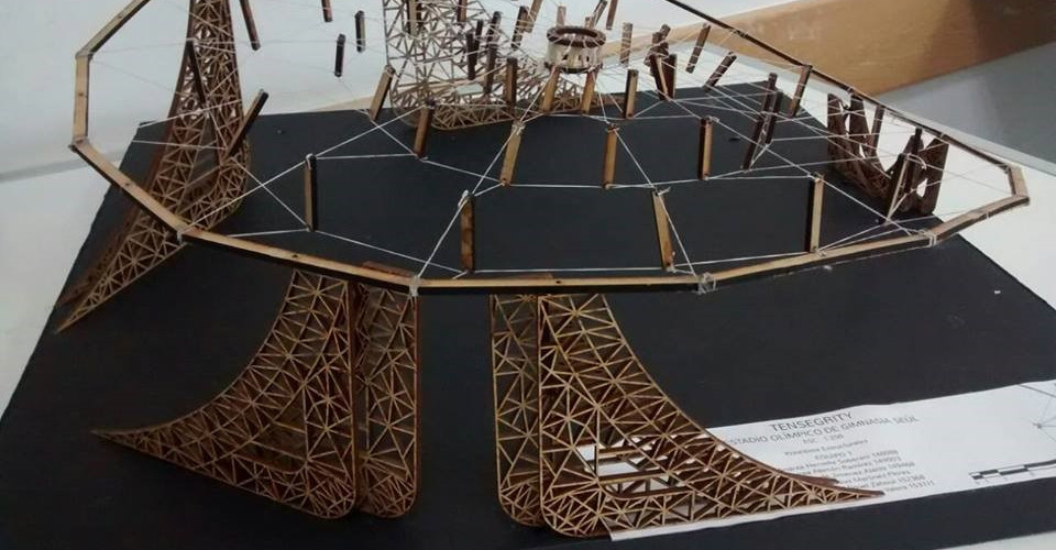 Crear el tensegrity del Estadio Olímpico de Seúl, por medio del sistema de cables continuos en tensión y puntales discontinuos en compresión